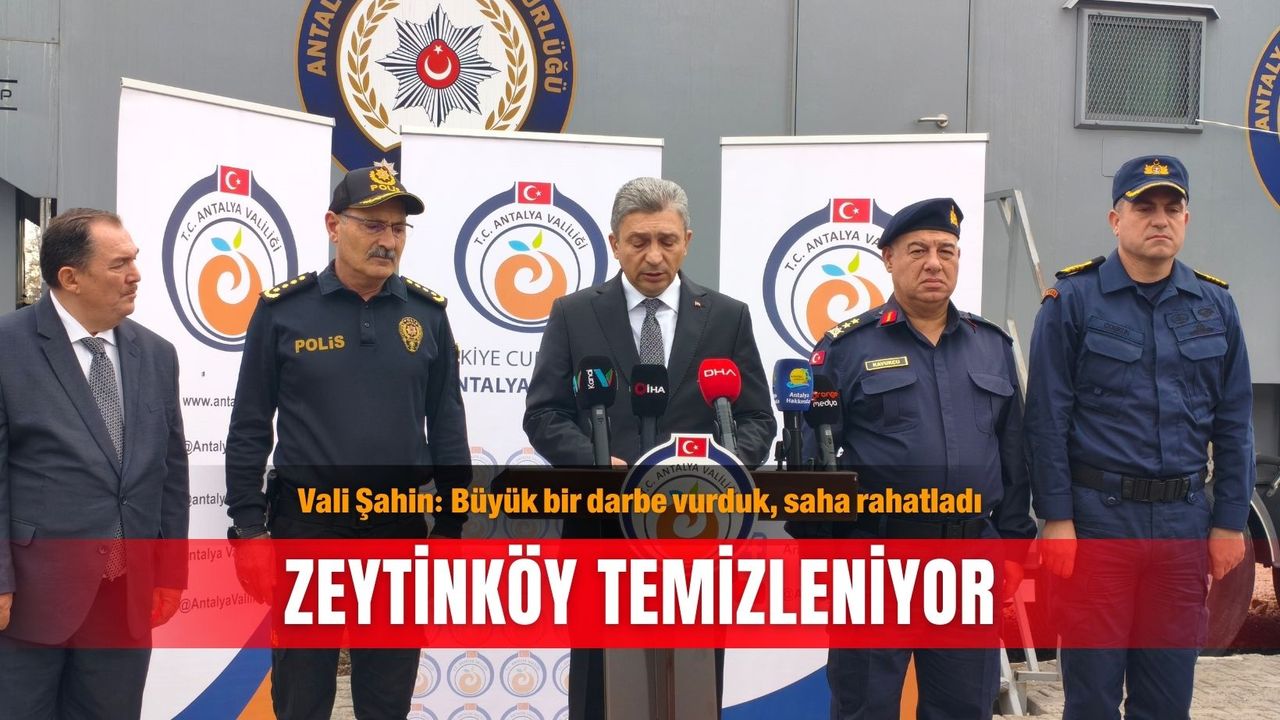 Kasım Ayı İl Asayiş ve Güvenlik Toplantısı Vali Hulusi Şahin başkanlığında Yeşildere (Zeytinköy) Mahallesi’ndeki Antalya Emniyet Müdürlüğü Mobil Karakol'da yapıldı. Toplantıda konuşan Vali Şahin, Zeytinköy bölgesinin zehir tacirlerinden temizlenmesi ile ilgili çalışmaların hız kesmeden sürdürüldüğünü belirterek, "Talep olduğu müddetçe her zaman arz filizlenir. Siz biçersiniz, başka bir yerden tekrar peydahlanır. Buraya bir karakol, polis merkezi yapacağız. Zaten mobil aracımız burada sabit duruyor, bölgede her zaman ekiplerimiz var. Burada polis hep olacak. Kentsel dönüşüm ile alakalı işler yapılması lazım. Burada imar faaliyetleri gerekiyor. Bu konuda paydaş kurumlarımızla çalışıyoruz ve tüm binaların yıkılması lazım. Çalışmalarımız devam ediyor. Kolay bir şey değil, imar problemleri var. Mülkiyet sorunları var. Parçalı bir mülkiyet yapısı var. Tebligat yapılması kolay değil. Bunlar zaman alan işler" dedi. Geçtiğimiz günlerde Antalya başta olmak üzere 17 farklı ilde yapılan Türkiye'nin en büyük uyuşturucu operasyonunun verilerini açıklayan Vali Şahin, operasyon neticesinde gözaltına alınan 519 şüpheli şahıstan 472'sinin tutuklandığını belirtti.