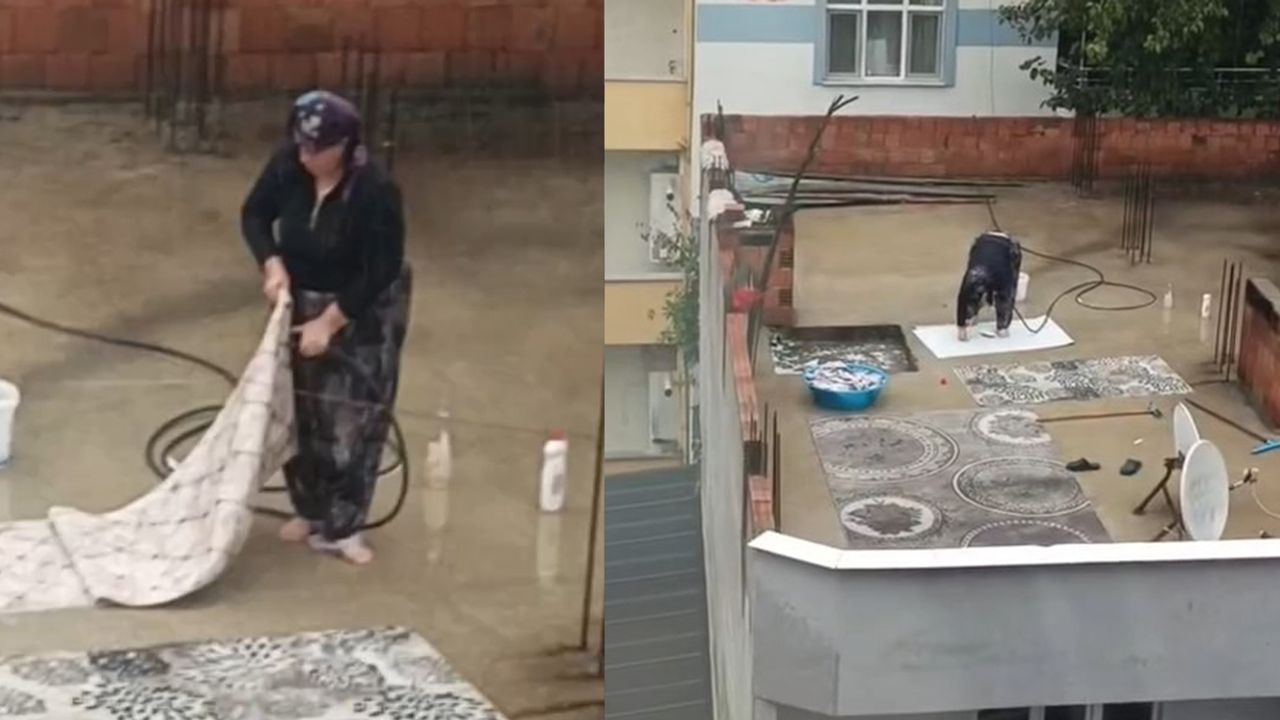 Bursa’da barajlar boşalmasıyla sular kesilmeye başladı. Bir yandan da yağmur yağışı başladı. Ancak bu yağışlar barajlar için şimdilik yeterli değil. Belediyenin uyarısı ve kesintilere rağmen bir kadın apartman çatısında halı yıkarken görüntülendi. İlginç anlar çevredeki vatandaşların dikkatinden kaçmadı. Yağmurun altında çatıda halı yıkayan kadını görenler, o anları cep telefonlarıyla kaydetti.