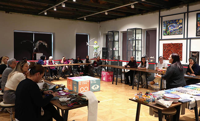 Atölyeye katılan kadınlar, kumaş artıklarını değerlendirme tekniklerinden temel dikiş yöntemlerine kadar pek çok bilgiyi uygulamalı olarak öğrenme fırsatı buldu. Eğitmenler, farklı dokulardaki kumaşların nasıl şekillendirilebileceğini, bir maskotun tasarım sürecinin hangi aşamalardan geçtiğini adım adım anlattı. Katılımcılar, kendi yılbaşı maskotlarını tasarlayarak kişisel dokunuşlarını ekledi. Kimi küçük bir kardan adam yaptı, kimi minik bir palyaço, kimi de tamamen kendi hayal gücünden çıkan yeni yıl figürleri tasarladı. Yılbaşı öncesinde düzenlenen atölye sıcak ve neşeli bir atmosferde gerçekleşti.